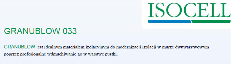 - Granublow 033 to idealny izolator do przyszłej izolacji dwupowłokowego muru. Dopasowuje się bezproblemowo do wszystkich krętych konstrukcji., nie pozostawiając szczelin.