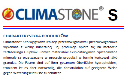 | Współczynnik przewodzenia ciepła | λ = 0,036 – 0,041 W/m.K (w zależności od gęstości nasypowej izolacji) |